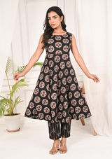 Printed Round Neck Sleeveless Black Tunic With Pant