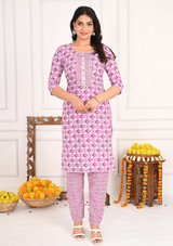 Set Includes:Kurta: Delicate buta print on soft, breathable purple cotton, offering a vibrant yet sophisticated look. (Length: 44 inches)