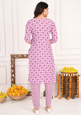 Infuse your ethnic wardrobe with timeless charm and modern style with this exquisite purple kurta set. Crafted from pure cotton, the kurta features intricate buta prints that add a touch of traditional sophistication. Paired with stylish zigzag pants and a complementing dupatta, this ensemble creates the perfect balance of classic and contemporary, making it ideal for festive occasions, casual gatherings, or semi-formal events.