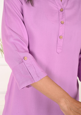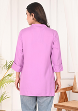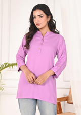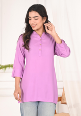 Add a pop of color to your wardrobe with this stylish purple rayon top, designed for both casual and office wear. Featuring a solid color and regular sleeves, this top offers a simple yet elegant look that pairs perfectly with your everyday outfits. Soft and breathable, it provides all-day comfort, making it a versatile choice for work or relaxed outings.