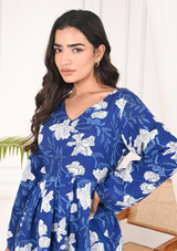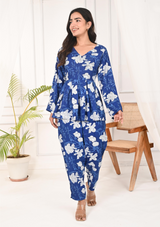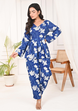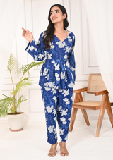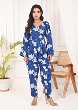 Indigo Rayon V-Neck Peplum Top with Pant Set