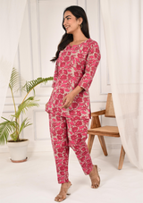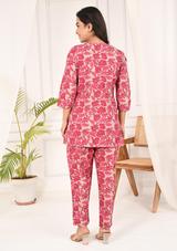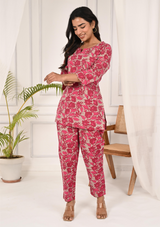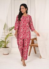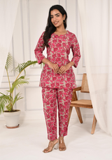 Floral Printed Round Neck Pink Tunic With Pant