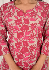 Pink & Grey Floral Printed Cotton Blend Tunic with Trouser