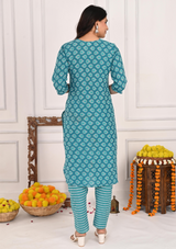 Green Buta Pure Cotton Suit Set