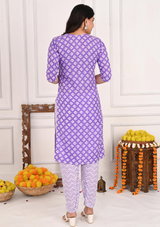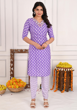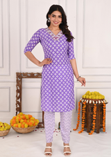 Add a touch of modern glamour and traditional elegance to your wardrobe with this beautifully crafted purple cotton kurta set. Featuring intricate sequins work along the V-neckline, this set offers a perfect blend of subtle shimmer and classic charm. The rich purple shade paired with stylish zigzag pants creates a contemporary yet graceful silhouette. Complete the look with the complementing dupatta, which adds a soft, flowing elegance. Ideal for festive occasions, semi-formal events, or casual gatherings, this set ensures you stand out in style and comfort.
