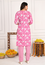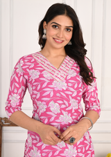 Delicate Pink Floral Cotton Kurta Set with Sequins Work & Lining Pant