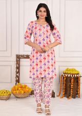 Perfect for festive gatherings, casual outings, or semi-formal occasions, this floral cotton kurta set is sure to make you stand out with its blend of traditional charm and modern sophistication.