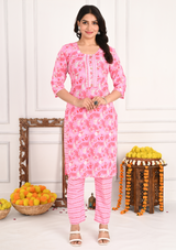 Fresh & Feminine: New Floral Printed Pink Kurta Set – Effortless Elegance