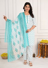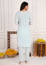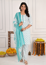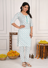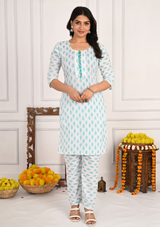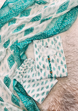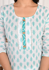 ✨ Set Includes: ✔ Kurta: Pure cotton white kurta with intricate green floral print for a fresh, vibrant look. (Length: 44 inches)