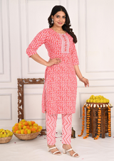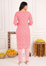Make a statement of elegance and style with this Leaf Print Round Neck Cotton Kurta Set – where comfort, tradition, and modern style seamlessly meet!