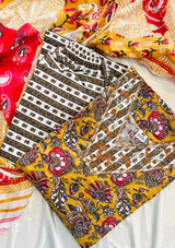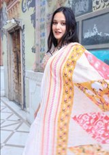 Bring a burst of color and charm to your ethnic wardrobe with this exquisitely designed mustard floral kurta set. Crafted from soft, breathable pure cotton, this set features a beautiful floral print with sequins detailing on the neckline, adding a touch of shimmer. The contrast white pant and dupatta enhance the look, offering a perfect balance of vibrant and subtle elegance. Ideal for festive occasions, casual outings, or semi-formal events, this set is a must-have for your collection.