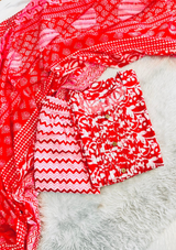 Brighten up your wardrobe with this stunning red kurta set, designed with intricate white floral prints on pure cotton. The set features a chic zigzag pant and a complementing dupatta, offering a perfect blend of tradition and contemporary style. Ideal for festive gatherings, casual events, or semi-formal occasions, this ensemble will keep you looking stylish and feeling comfortable.