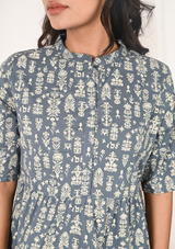 This elegant grey rayon kurta combines traditional and contemporary elements with its beautiful ethnic motif print. Featuring draped sleeves and a stylish mandarin collar, it offers a flattering fit with a flared hem for added movement. The button closure enhances the design, while the machine-weave fabric ensures durability and comfort. Perfect for casual or semi-formal occasions, this kurta adds a chic touch to any wardrobe.