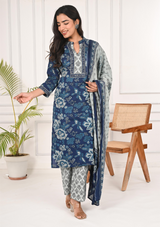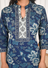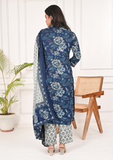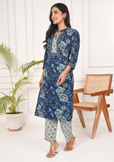 Indigo Floral Printed Cotton Kurta Set